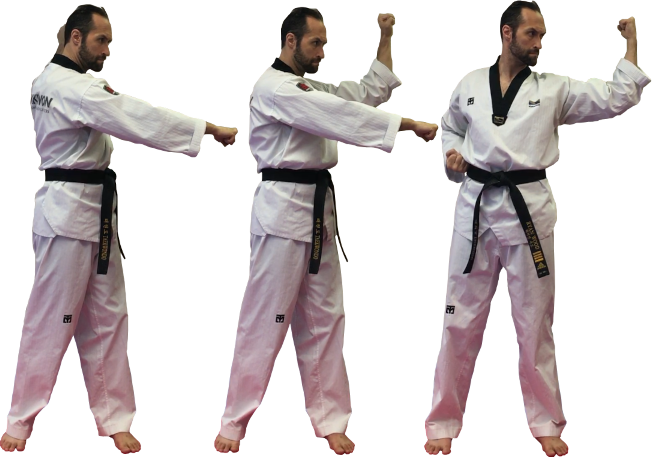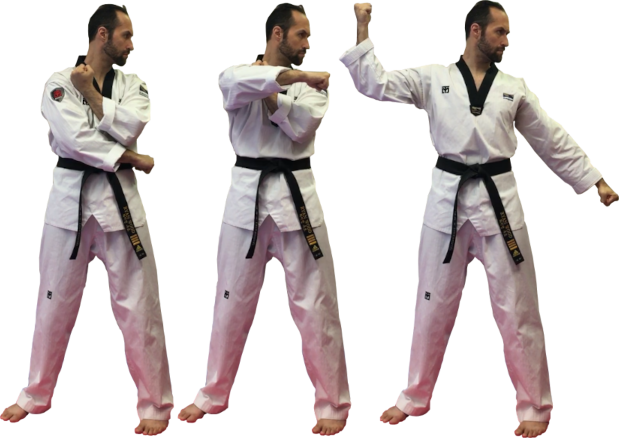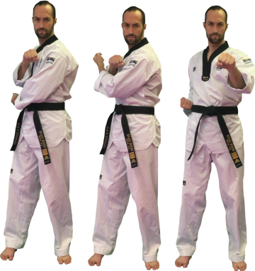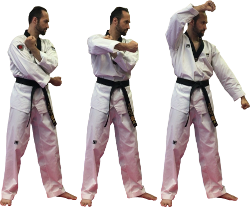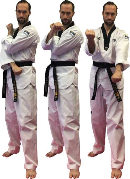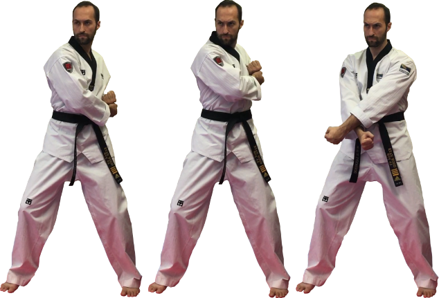 Bull Block appears in two Recognized Poomsae, Sipjin and Jitae, and each has a different 1st position and path to the 2nd position. The version depicted here is the one from Sipjin.