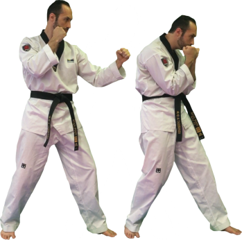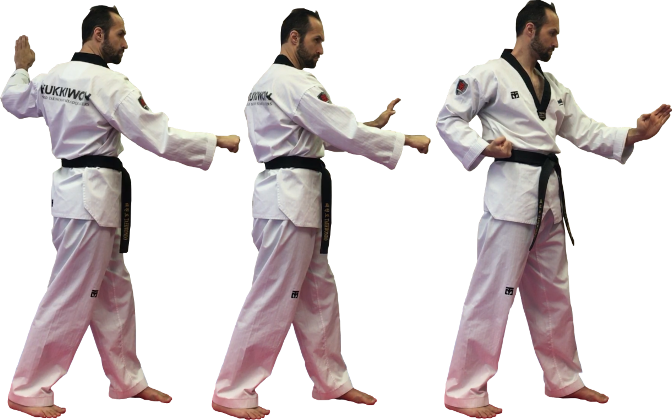 This blocking skill is to directly confront the opponent’s advance by striking it with the shin bone, causing serious injury to the attacker. This skill is one practical application of Hakdari Seogi / Crane Stance and makes defense and offense possible at the same time.